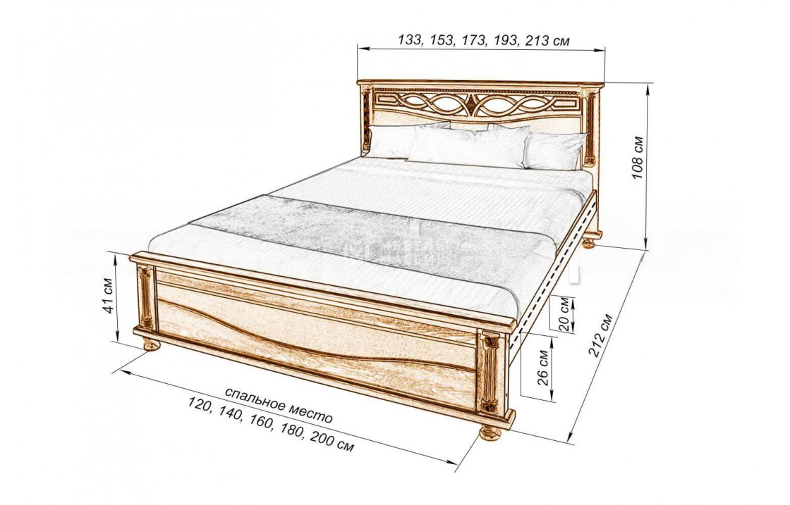 Оригинальная кровать Мелиса из берёзы отличается узорчатым изголовьем и низким изножьем. Модель, которую можно купить по выгодной цене в нашем интернет-магазине, оснащена аккуратными ножками для защиты напольного покрытия, а также обработана специальным лаком для увеличения срока службы изделия. Осуществляется доставка на дом по Невиномысску и Ставропольскому краю .| Размер | Цена | |