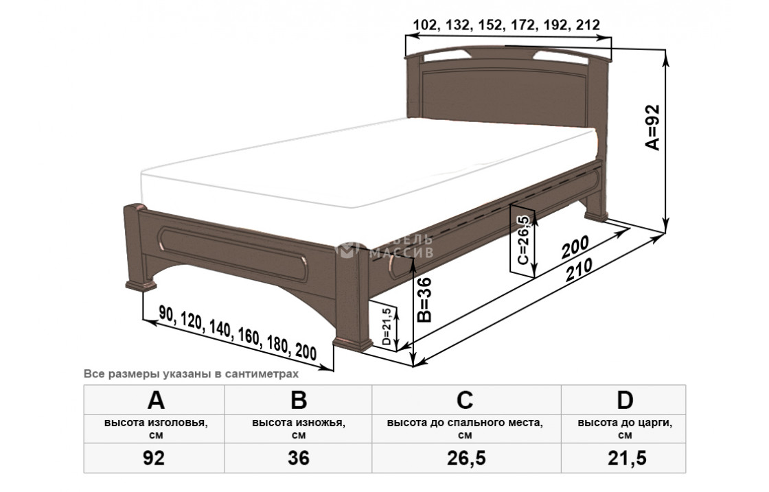 Прочная кровать Лаура сделана из экологически чистого древесного массива. Модель имеет чуть изогнутое изголовье с двумя продолговатыми отверстиями и крепкий каркас с устойчивыми ножками. Изделие, которое можно купить по выгодной цене в нашем интернет-магазине, представлено в различных комплектациях. Осуществляется доставка на дом по Невиномысску и Ставропольскому краю .| Размер | Цена | |