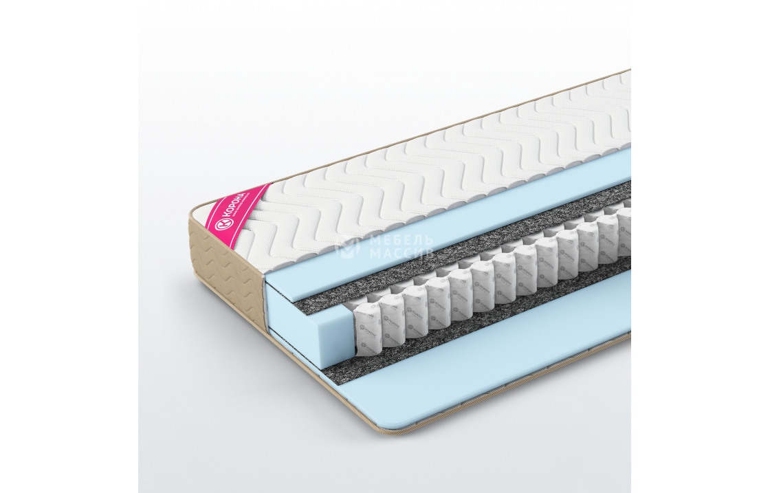 - Короб из ППУ ? ППУ по периметру - высокоэластичный пенополиуретан (ППУ). Материал расположен по периметру матраса, что усиливает его каркас. Обладает свойствами: прочность, плотность и огнестойкость.