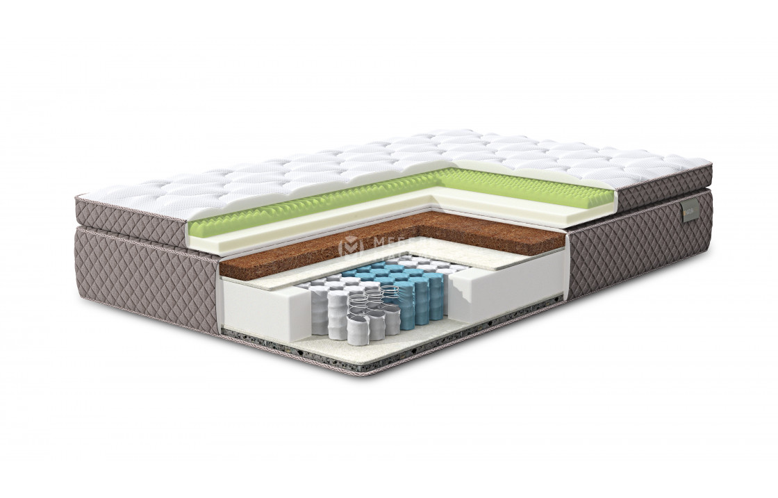 Кокос - переплетенные волокна кокосового ореха, растительного происхождения. Исключительные свойства кокоса в прочности, упругости и гигиеничности. Материал придает жесткости матрасу. Обладает отличной вентилируемостью, устойчив к любой влажности и перепадам температуры, гипоаллергенный и долговечный.