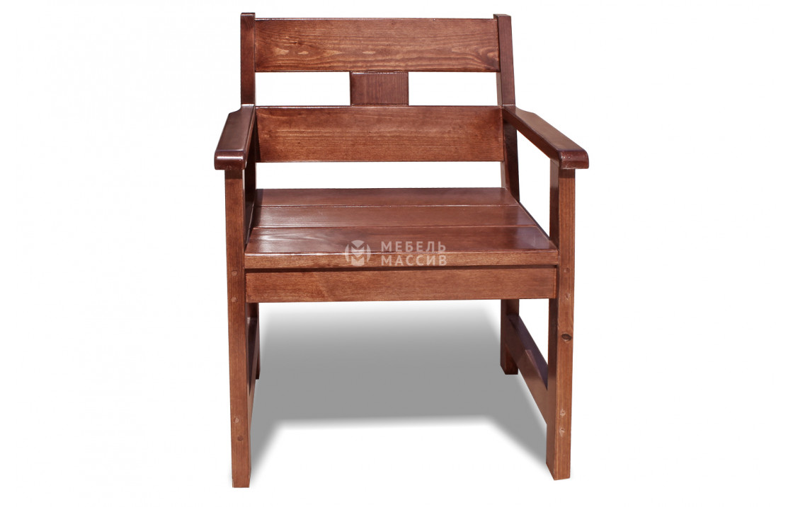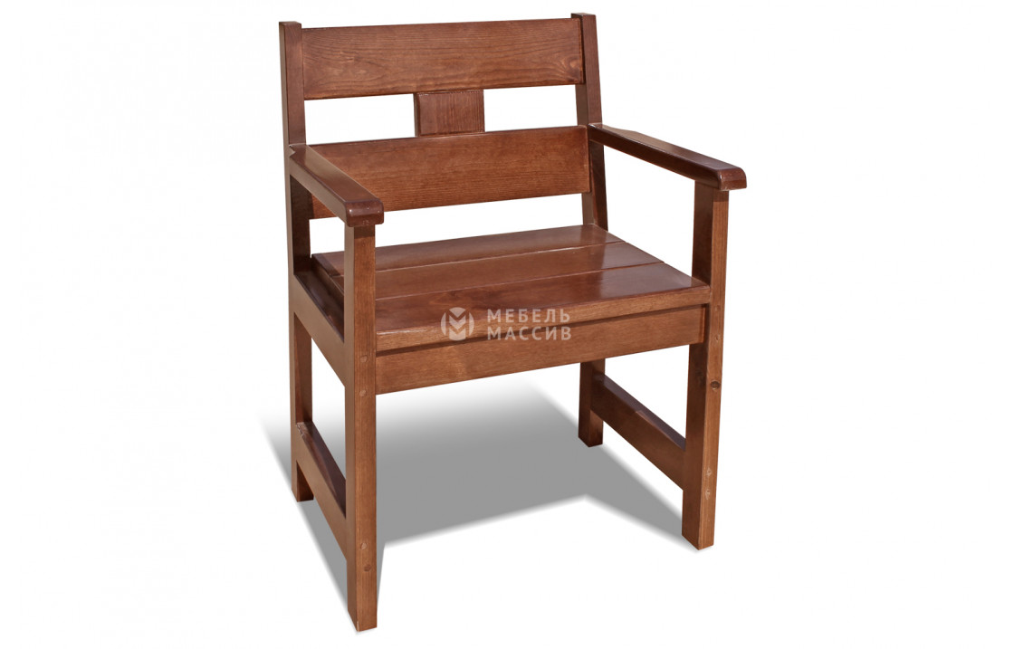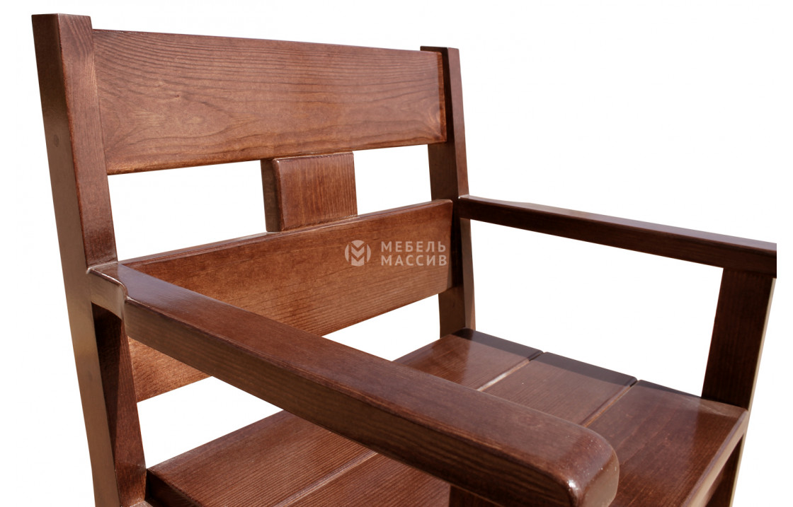 Кресло Русич из массива натурального дерева. Товар представлен в четырёх вариантах исполнения из древесины на выбор: сосна, берёза, бук или дуб. Широкий выбор вариантов покраски позволяет органично вписаться в любой интерьер. Отличается износостойкостью, надёжностью, лаконичным дизайном. Купите изделие по специальной цене с доставкой на дом в интернет-магазине «Мебель Массив». Доставка по Невиномысску и Ставропольскому краю .Рейтинг